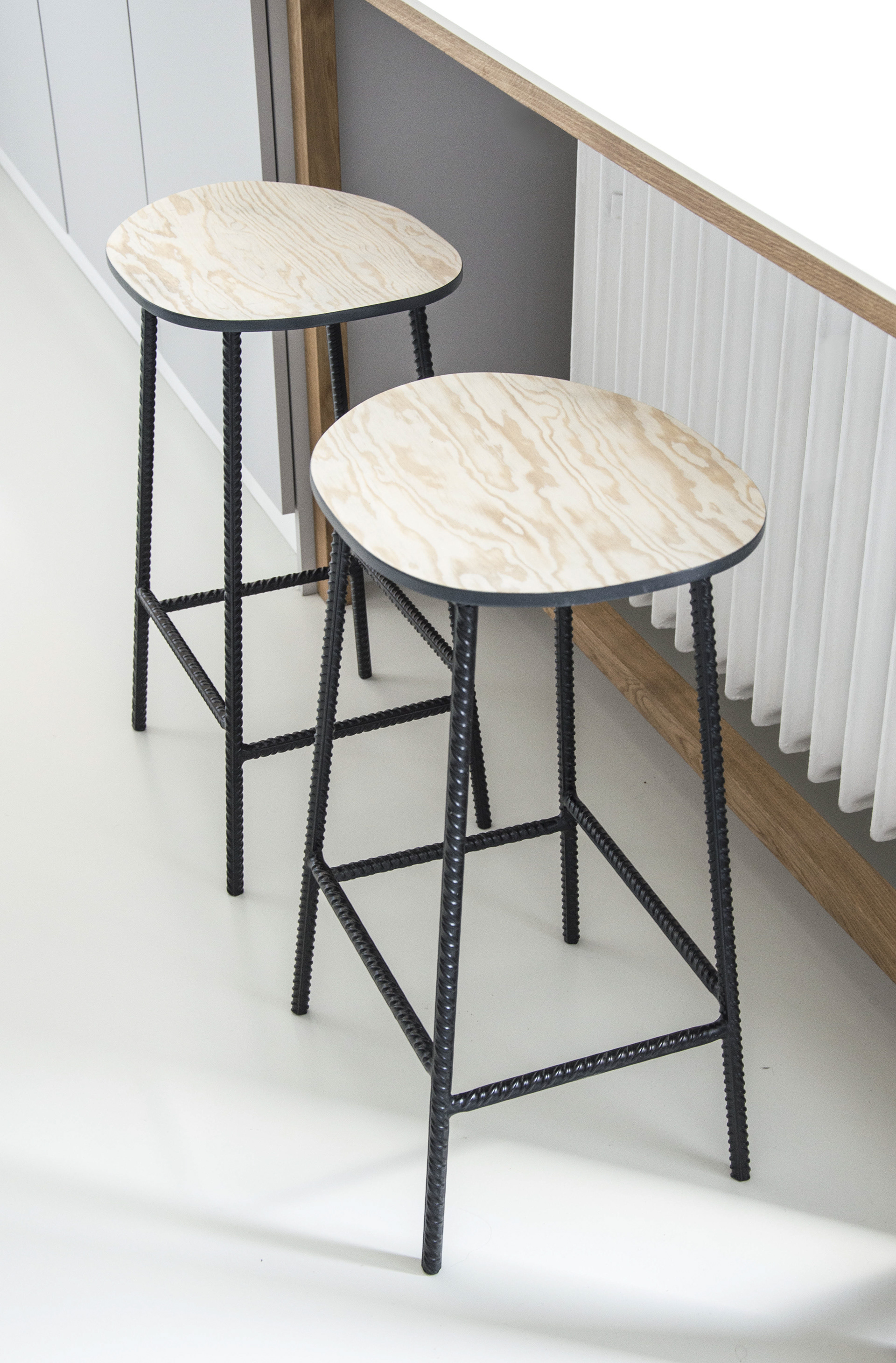 Obavy z nedostatku světla ovlivnily i výběr materiálů. Světlá litá podlaha propojuje všechny místnosti, které jsou "zabydleny" nábytkem z překližky a masivního dubového dřeva. Veškerý nábytek byl vyroben na míru s důrazem na řemeslný detail.
